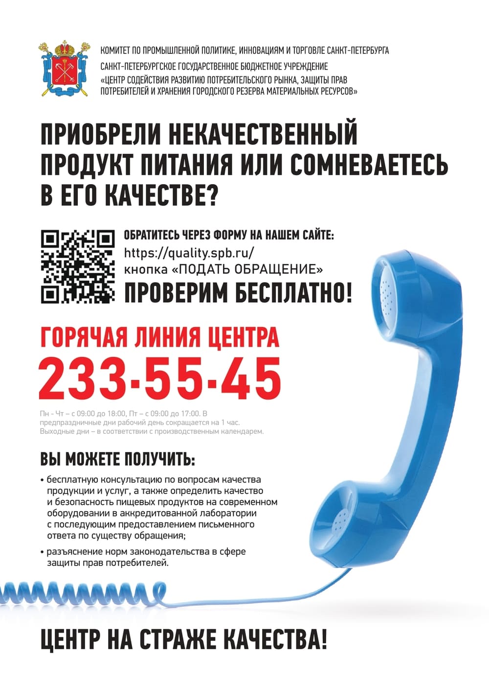 Санкт-Петербургское государственное бюджетное учреждение «Центр контроля качества товаров (продукции), работ и услуг» с 07 октября 2025 г. изменило свое наименование на Санкт-Петербургское государственное бюджетное учреждение «Центр содействия развитию потребительского рынка, ...