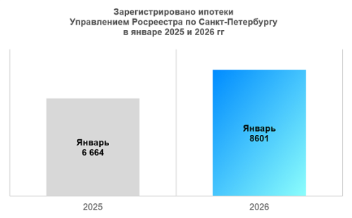 В январе 2026 года зарегистрировано ипотеки 8 601 (в январе прошлого года – 6 664).