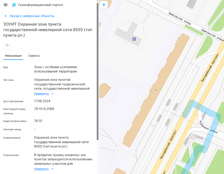 2. В случае, если данные об охранной зоне геодезического пункта не внесены в ЕГРН: справочную информацию о наличии на земельном участке или объекте капитального строительства Санкт-Петербурга геодезических пунктов можно получить в отделе геодезии и картографии Управления Росреестра по Санкт-Петербургу.