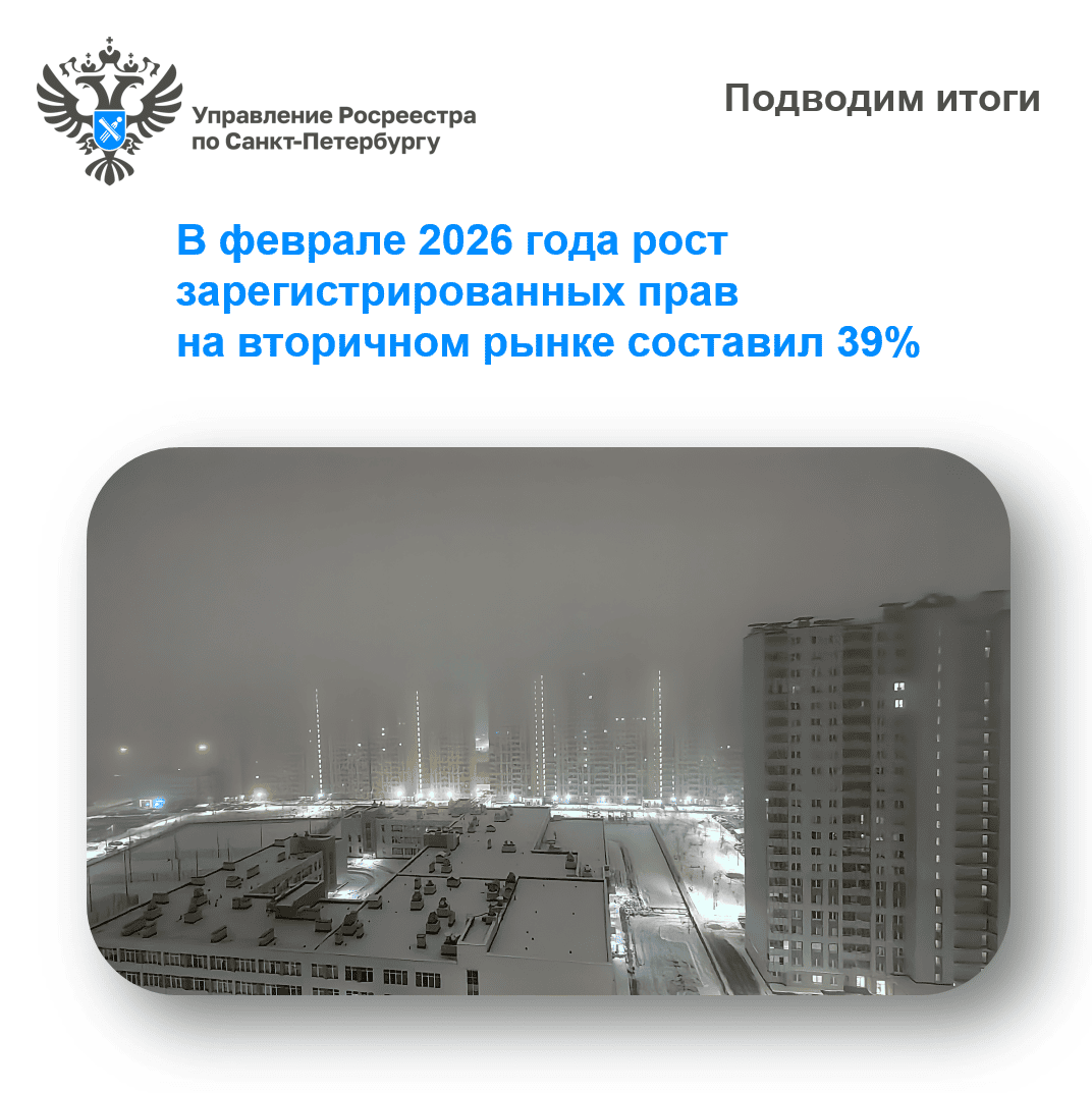 Управление Росреестра по Санкт-Петербургу подвело итоги деятельности по основным показателям учетно-регистрационной сферы в феврале 2026 года.