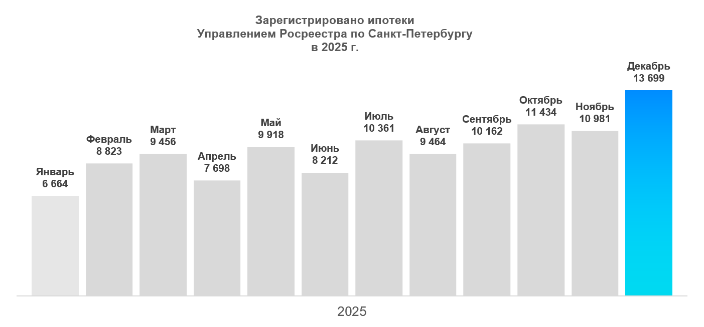 В 2025 году зарегистрировано ипотеки 116872 (в декабре 2025 года – 13 699, рост в сравнении с ноябрем – 25%).