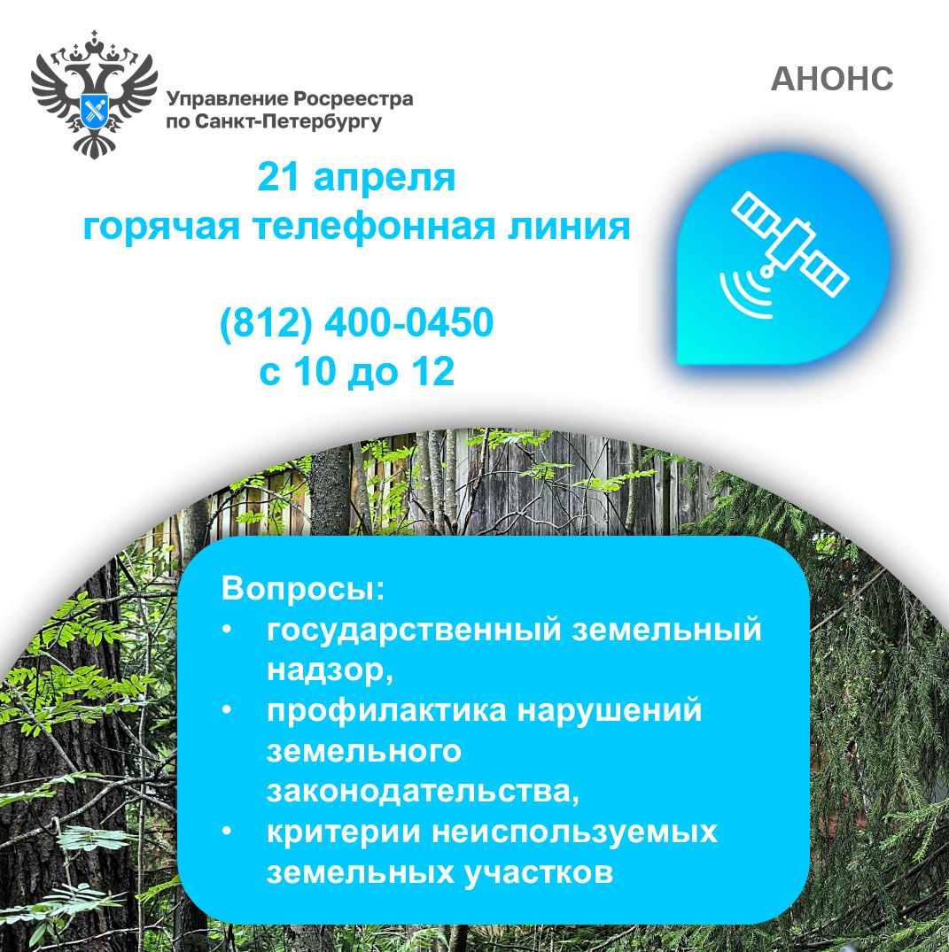 29 мая 2025 года с 10.00 до 12.00 часов Управление Росреестра по Санкт-Петербургу проводит горячую телефонную линию: