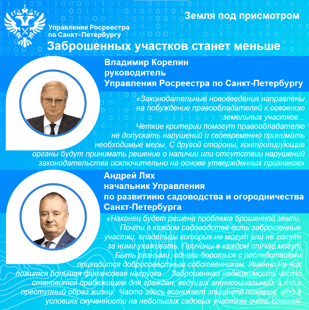 Заместитель руководителя Управления Росреестра по Санкт-Петербургу Андрей Юлов обращает внимание, что законодательные изменения направлены исключительно на побуждение правообладателей к освоению земельных участков, вовлечению их в хозяйственный оборот и повышению качества использования земельных ресурсов: