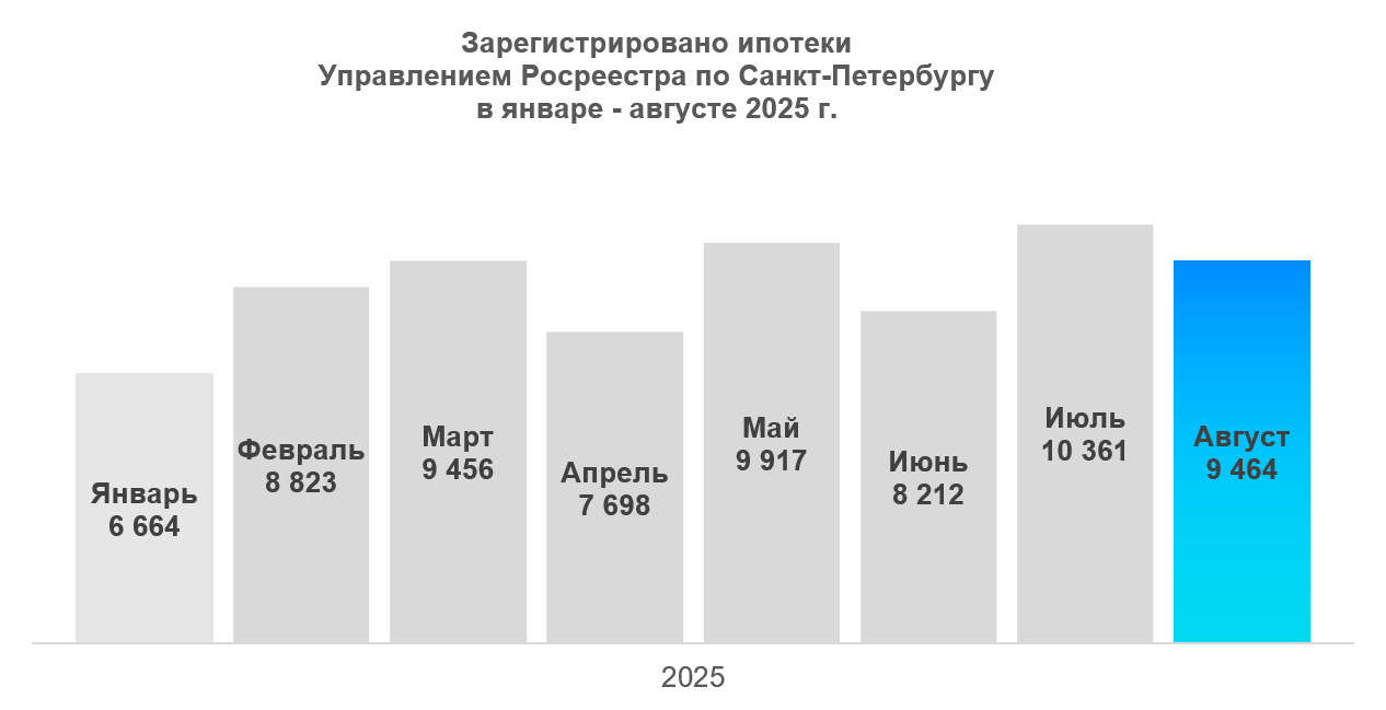 Ипотеки зарегистрировано – 10 361. Это максимальное значение в 2025 году. С начала года зарегистрировано ипотеки 61 132.