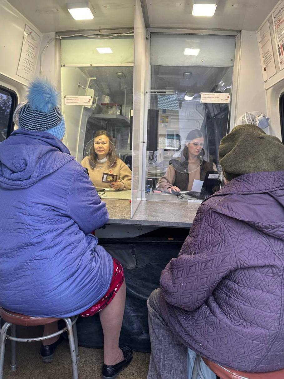 Помогали оформить карту сотрудники мобильного офиса МФЦ.