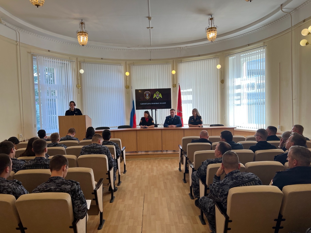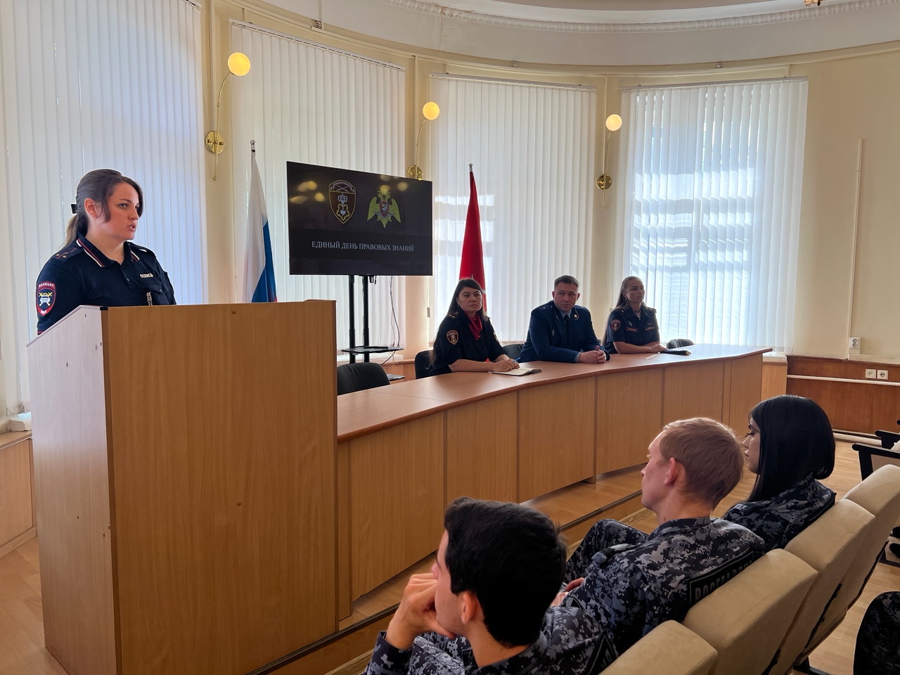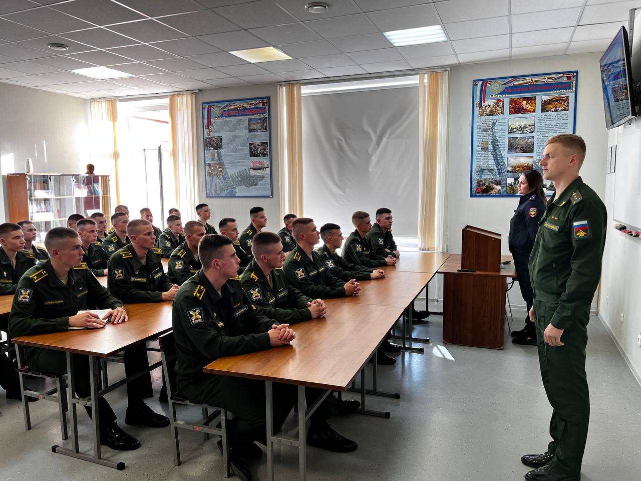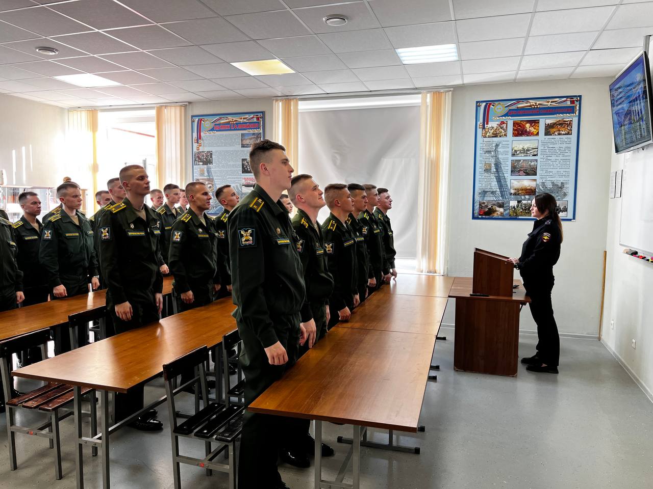 Курсанты узнали о правилах поведения на объектах транспорта и проезжей части, о видах административных правонарушений и о том, какая ответственность наступает за их совершение, о мерах борьбы с мошенниками в сети интернет.