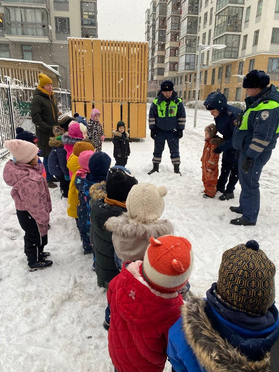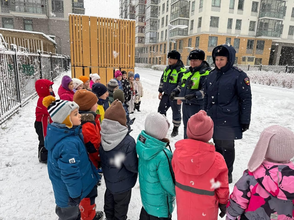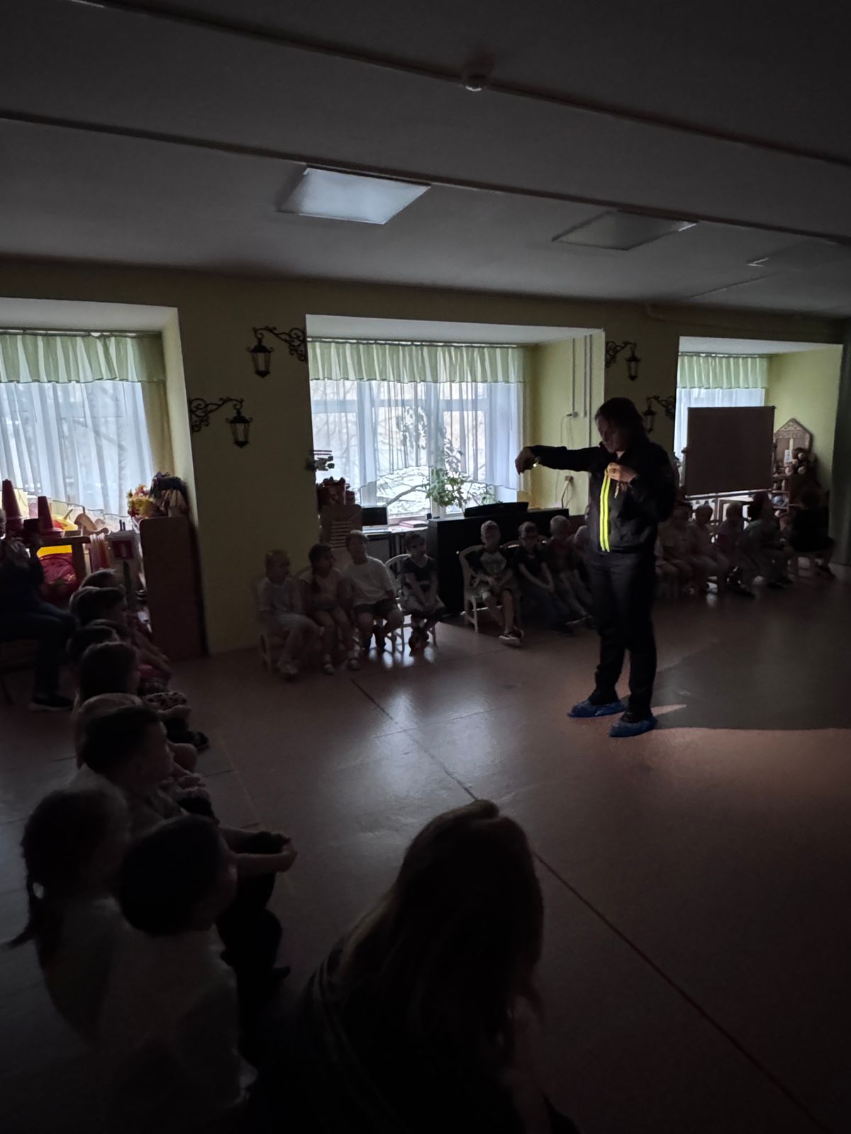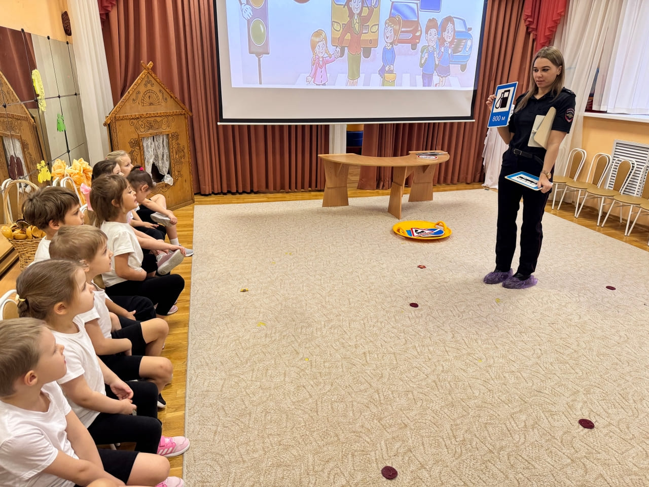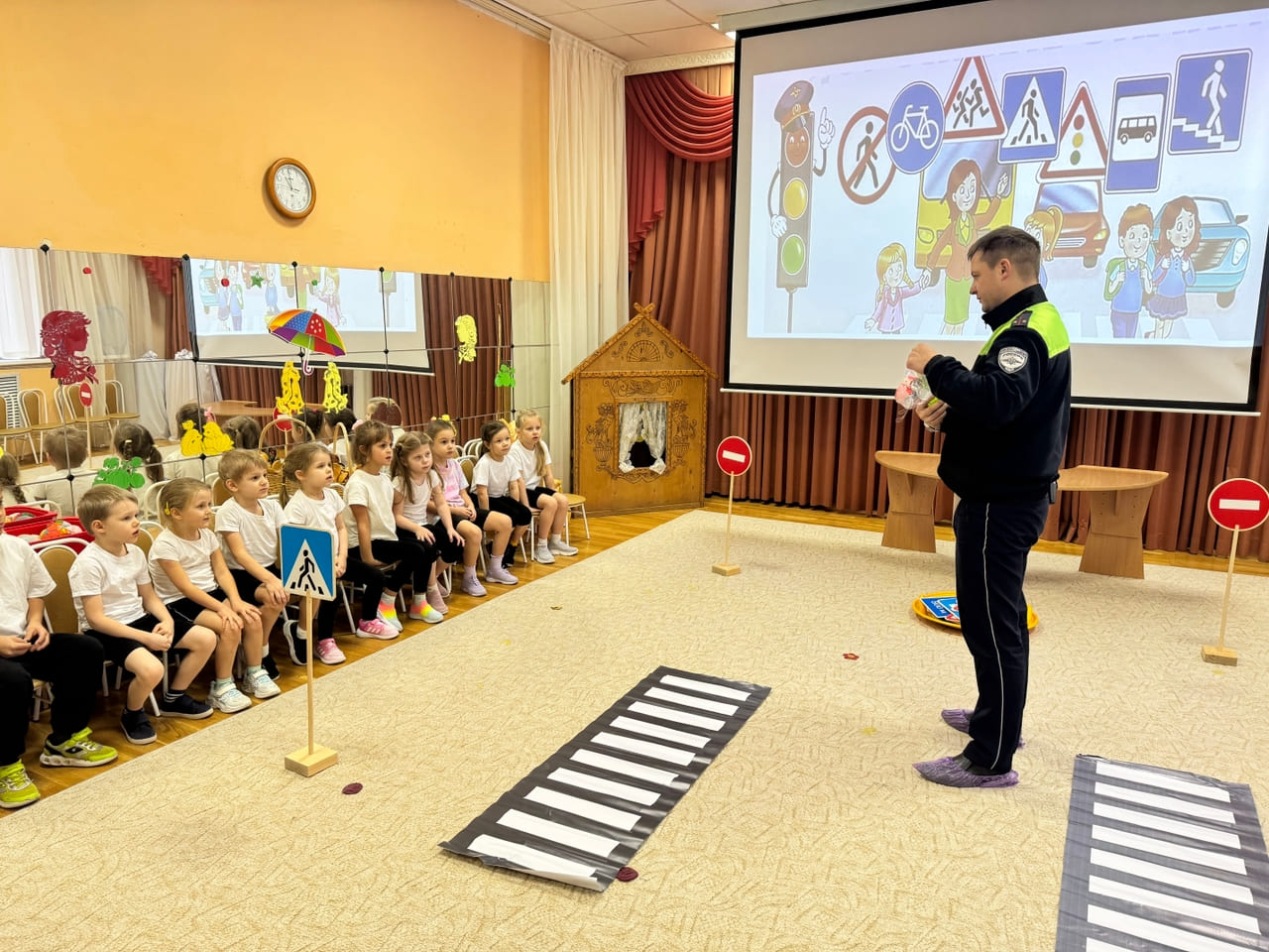 С воспитанниками детского сада вспомнили дорожные знаки, поговорили о важном, а именно: «Безопасность вблизи проезжей части», «Необходимость ношения световозвращающих элементов в темное время суток», «Важность знаний и соблюдения правил дорожного движения».