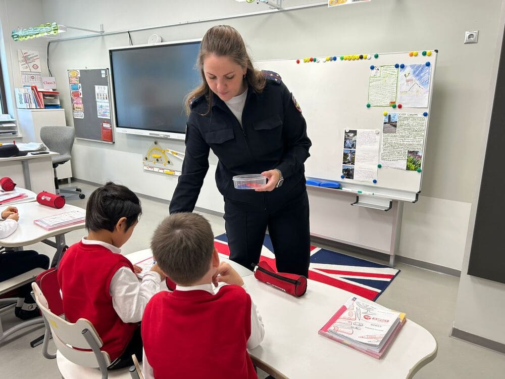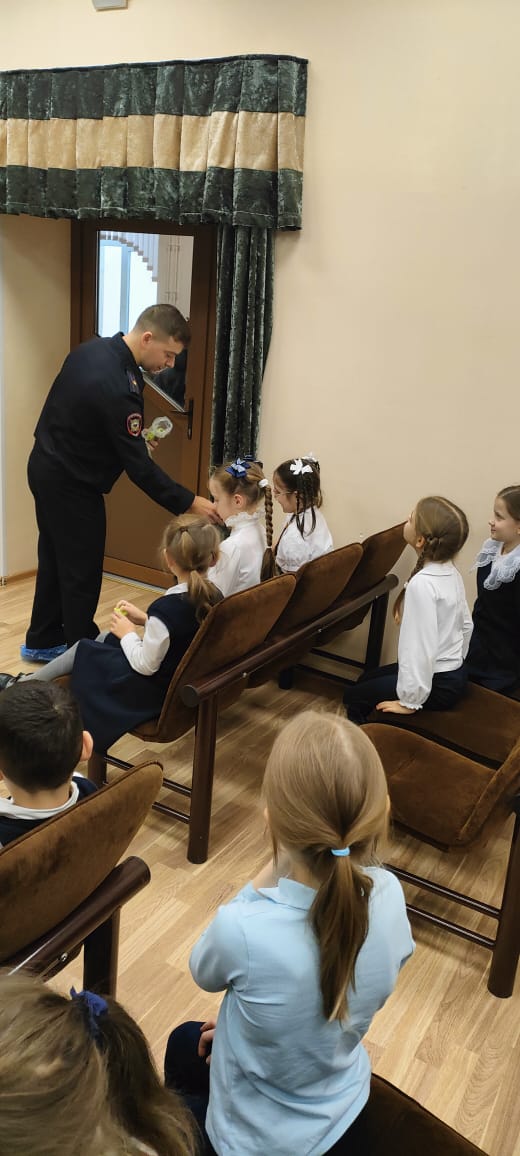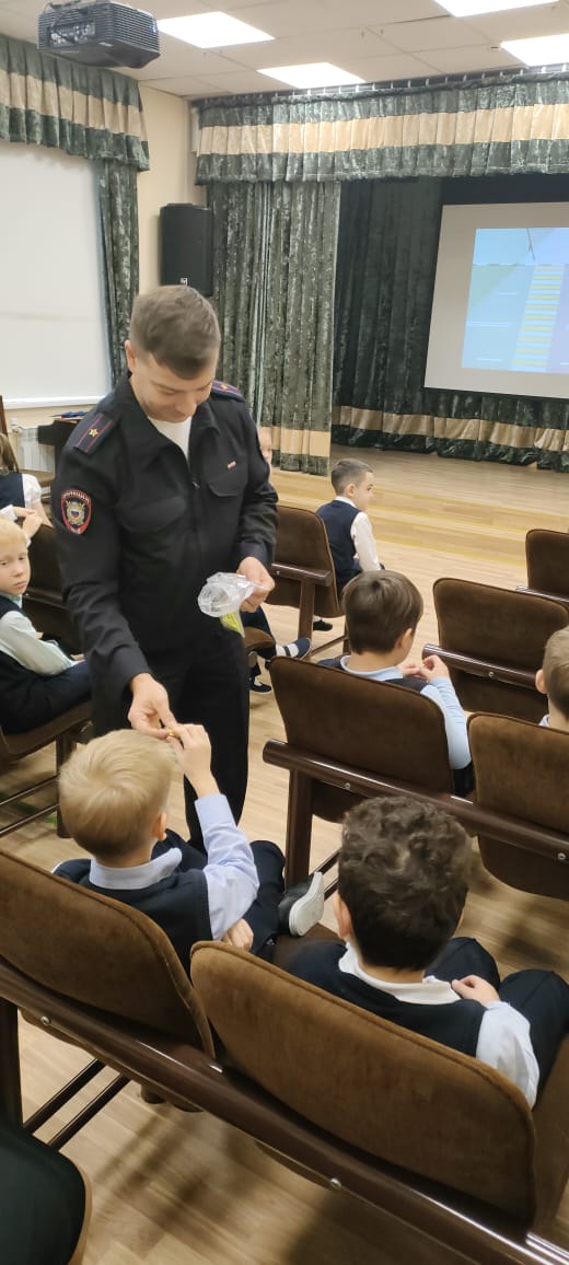 В ходе беседы ученики повторили правила дорожного движения и безопасного поведения на улице, правила перехода проезжих частей, правила поведения вблизи проезжей части в темное время суток, а также необходимость ношения световозвращающих элементов.