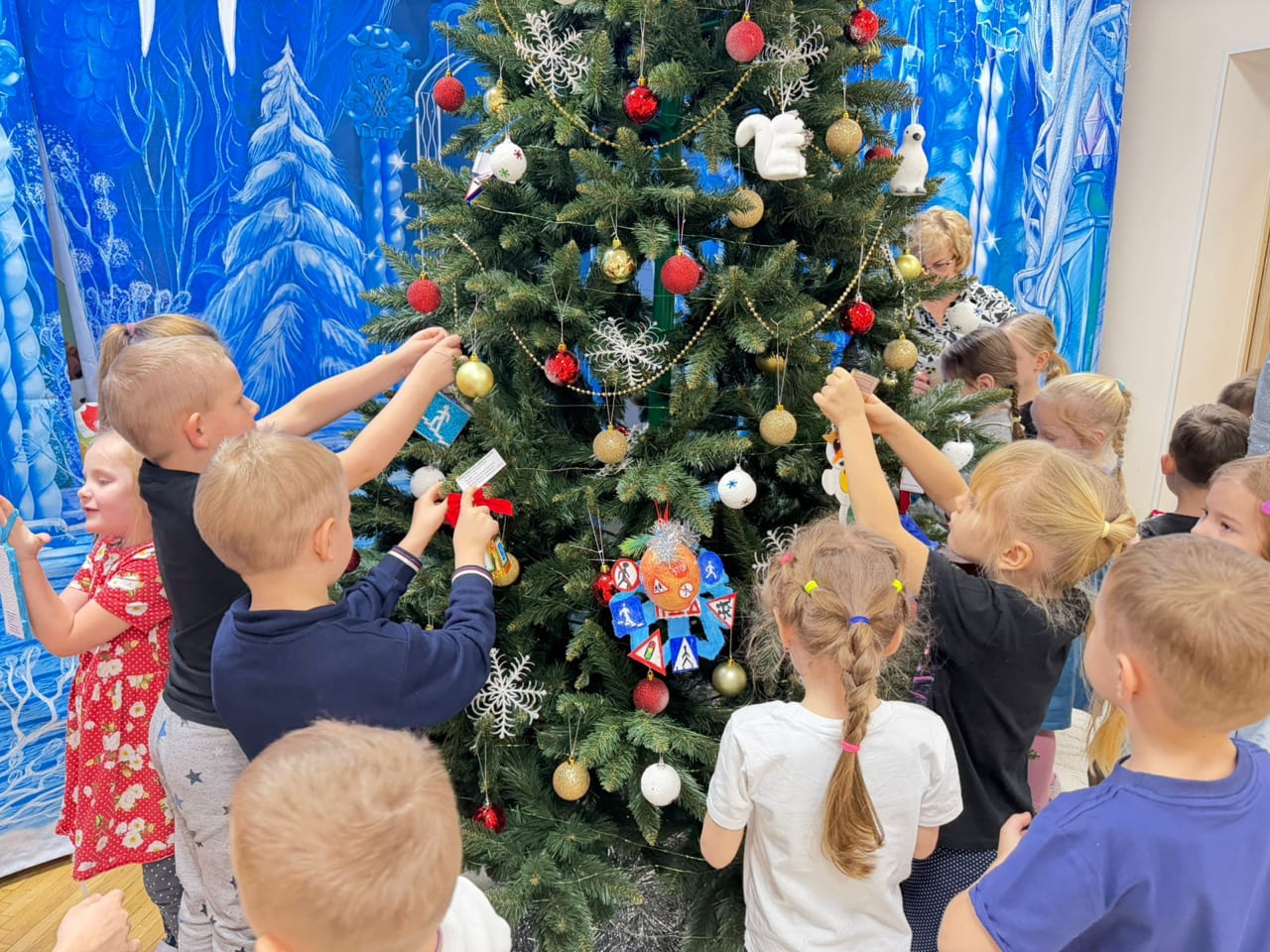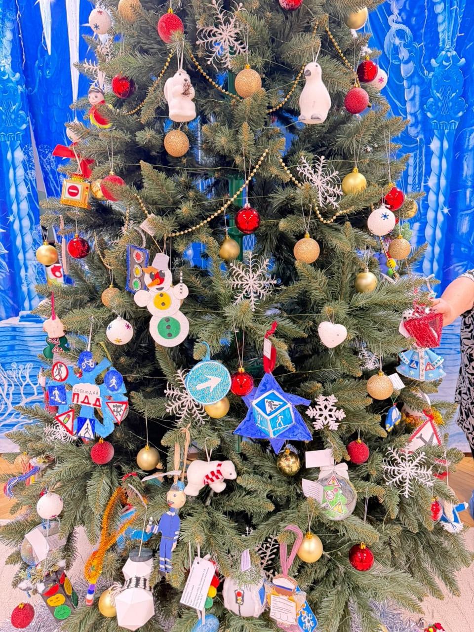 Воспитанниками детского сада напомнили о правилах дорожного движения в зимний период и поздравляли с наступающим Новым Годом! После всего дети совместно с инспектором отдела Госавтоинспекции и методистом районного центра нарядили елочку дорожными игрушками!