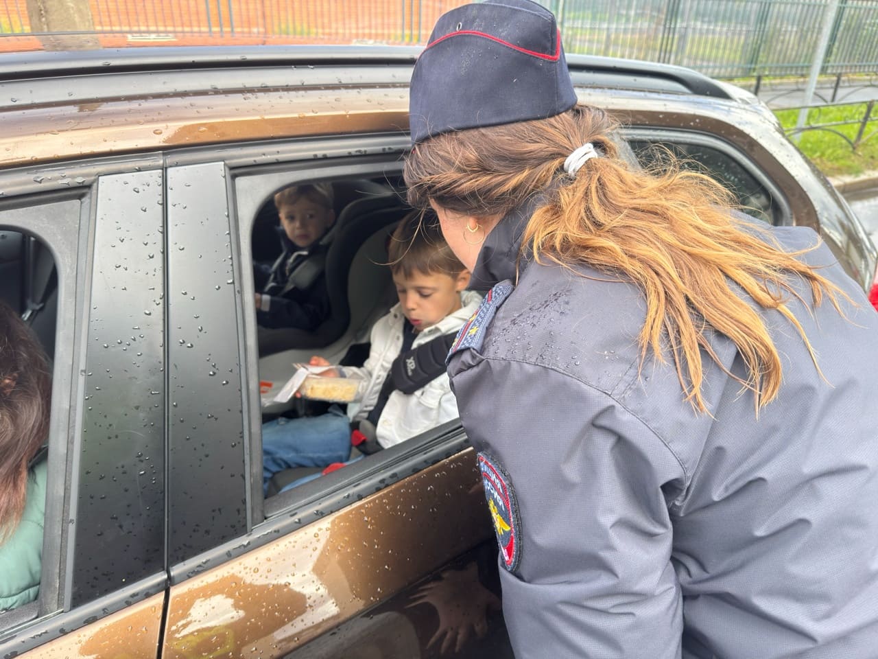 Сотрудники дорожной полиции напомнили родителям-водителям о том, как необходимо перевозить детей, о важности соблюдения скоростного режима. Попросили соблюдать дистанцию и учитывать погодные условия. Каждому водителю вручили буклеты-памятки, детям – световозвращающие элементы и пожелали удачной безопасной дороги!