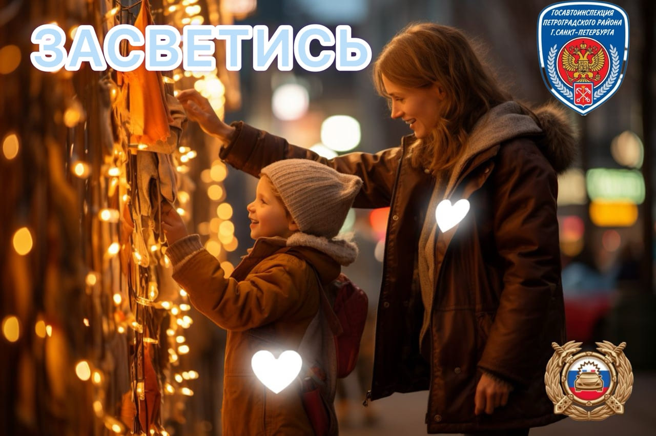 С 15 по 24 декабря 2025 года на территории Петроградского района будет проходить третий этап социально значимой акции «Засветись» и профилактическое мероприятие «Пешеход засветись».