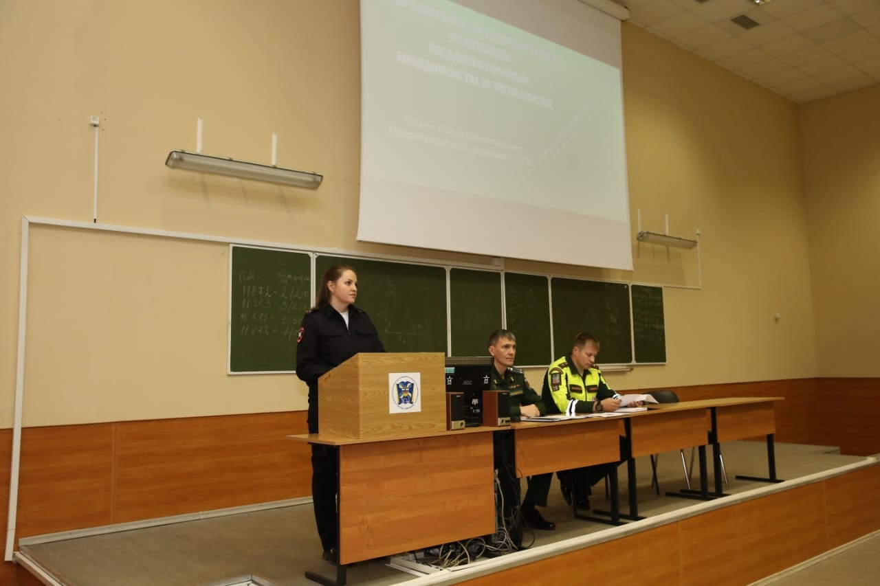 В рамках профилактического мероприятия «Юный пешеход» сотрудники УМВД России по Петроградскому району посетили Морской рыбопромышленный колледж