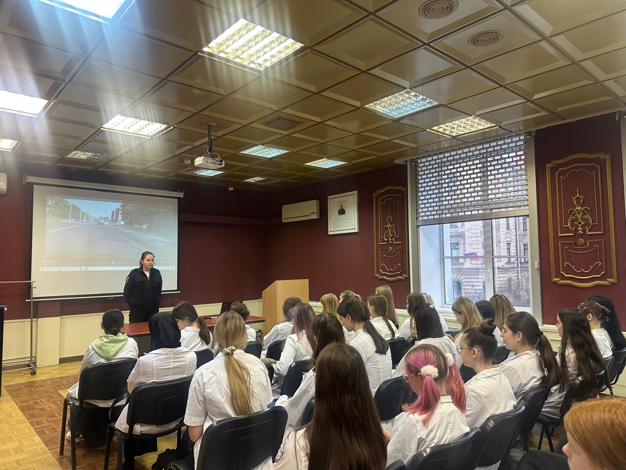 Инспектор Госавтоинспекции Петроградского района в рамках дня правовых знаний провела беседы с учениками ГБОУ СОШ №50