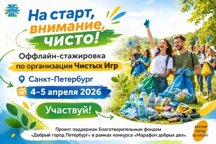 4-5 апреля 2026 года в Санкт-Петербурге состоится бесплатная офлайн-стажировка по организации экологических командных соревнований «Чистые Игры».
