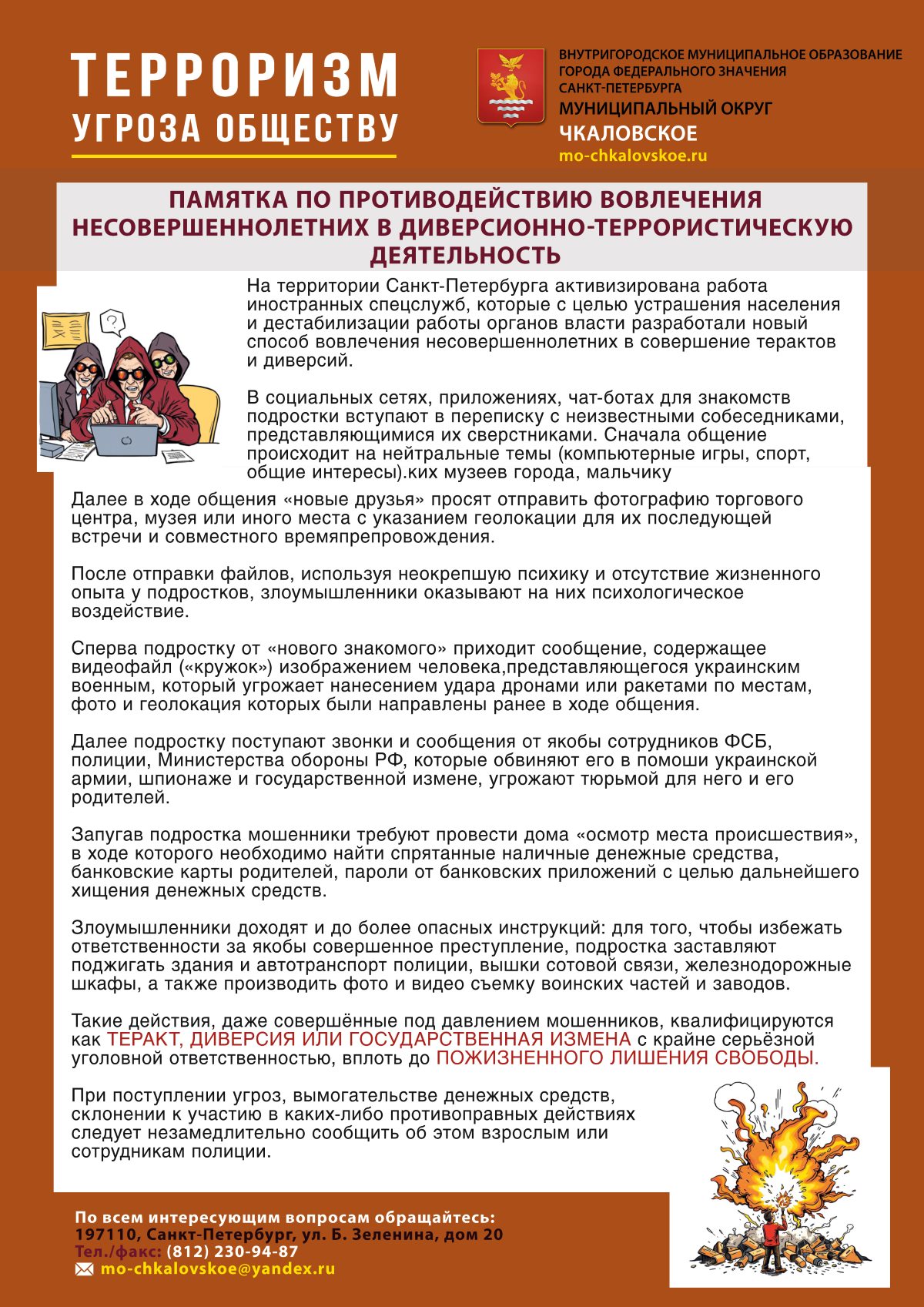 Памятка по противодействию вовлечения несовершеннолетних в диверсионно-террористическую деятельность